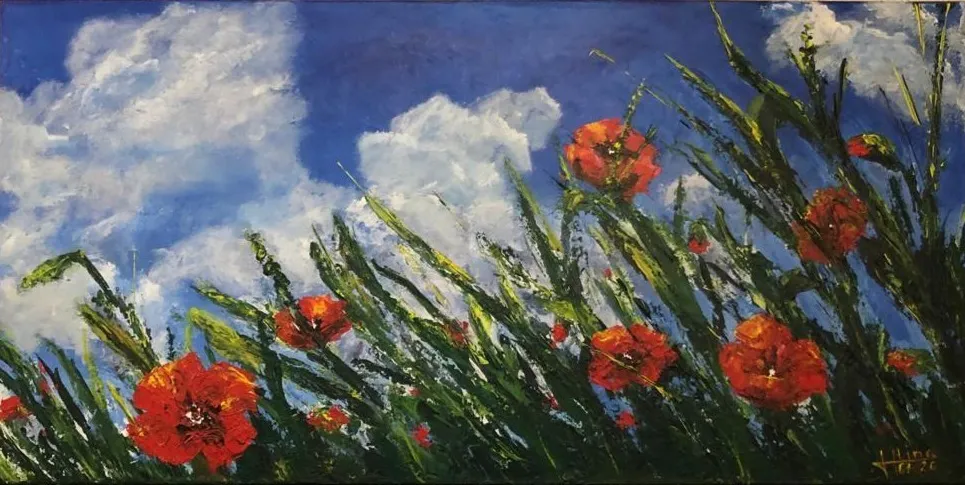 Mohnwiese in Acryl / 50x80cm / Verkauft